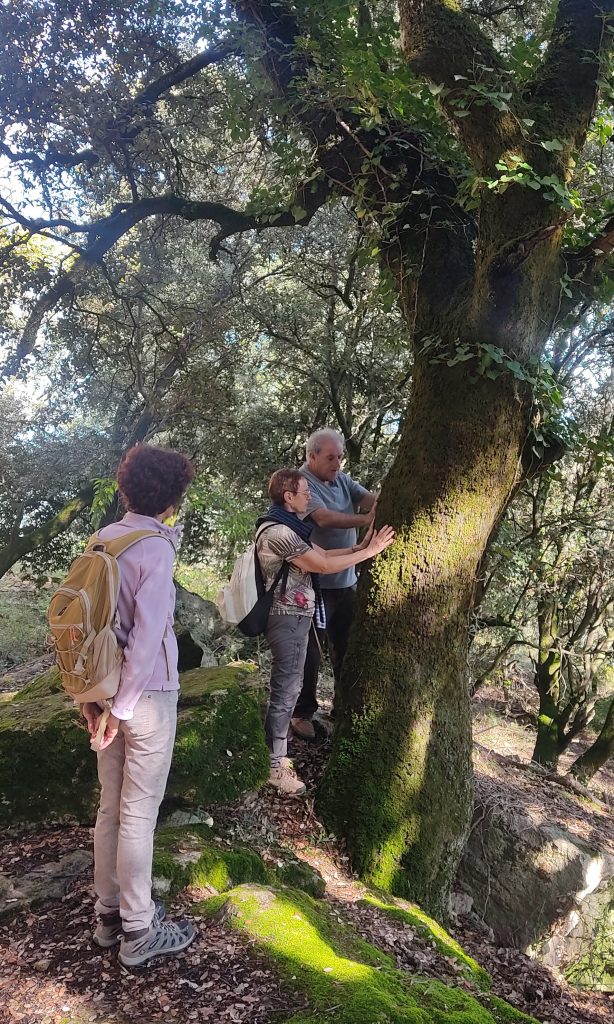 Nous avons poursuivi notre chemin dans la forêt, à la rencontre de grands arbres dont nous avons pu observer l’orientation et la signification de celle-ci. Il nous a été possible également d’interagir avec eux.