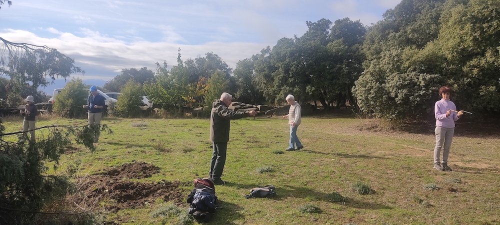 Au milieu des chênes verts et dans les parfums de la menthe poivrée, avec l’aide de Jean-François, Claude, Alain et Sylvie, il s’est agit, en premier lieu, de rechercher des réseaux telluriques qui sont des maillages électromagnétiques présents sur toute la planète, principalement les réseaux Hartmann et Peyré. Nous avons pu les trouver à l’aide, soit d’un pendule, de baguettes et, pour certains de clair ressenti. Il nous a été possible de mesurer leur largeur et d’en connaître plus sur leur effet sur notre organisme.